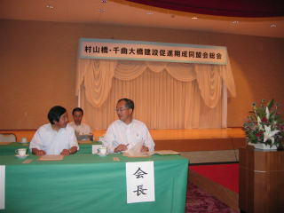 1).市との協議 @平成19年7月2日。交差点における車の停止線位置の変更を求める住民からの陳情を取次⇒陳情市民&道路河川課長と現場調査。結論:停止線を6m後退することで解消されることを、市から警察に要望の申出るをする。 A平成19年7月3日。国道403号沿いの街路樹がアメリカシロヒトリの被害にあっている申出により調査見聞⇒道路河川課に取次⇔県建設事務所即日駆除。を 2).市・自治会等公式行事 平成19年7月27日 於:光臨閣 来賓に若林正俊参議院議員(代理出席)、小坂憲次衆議院議員(代理出席)、吉田博美参議院議員(代理出席)、村石正郎県議、竹内久幸県議、吉池長野建設事務所々長、田中須坂建設事務所々長をお迎えして、平成19年度村山橋建設促進期成同盟会及び千曲大橋建設促進期成同盟会合同総会が開かれ出席しました。 両期成同盟会とも、平成18年度事業報告・歳入歳出決算を承認。平成19年度事業計画・歳入歳出予算案を承認し、役員については全員再任と決しました。 ○新役員 会長:三木須坂市長 副会長:鷲澤長野市長、市村小布施町長、久保田高山村長、笠原野電鉄椛纒\取締役。監事:藤井長野電鉄鰹務取締役、関野須坂市議会経済建設委員長。 ![]() 総会の一コマです 3).その他 @平成19年7月1日 住民より相隣関係の苦情申出のため現地調査。 A平成19年7月2日 産業廃棄物処理に関しての陳情受理。 B平成19年7月5日 泉小路活性の会幹事会に出席。 C平成19年7月6日 みちの会(3期議員の組織)の懇談会に出席。 D平成19年7月13日於:上町公会堂 泉小路活性の会平成19年度総会へ出席。 会員の大方の総意として、泉小路の道路拡幅の願望を再確認し、その手法として県が提示した12mを16mにすることについても、市民5万4千のためのインフラ整備として受け入れる意思であることが表示された総会でありました。 E 平成19年7月21日 須坂カッタカタ祭り議会連で参加! F 平成成19年7月23日 地域づくり市民会議(南部ブロック編)に出席。 ![]() 質問に答える三木市長 |
