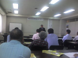 | 4)その他 ア)須坂商工会議所。平成20年9月6日。聴取者:30余名。 中心市街地活性化セミナー「頑張れ商店街」講師:品川区商店街連合会副会長、網島信一氏の講演 氏曰く:町興しの三大原則は、「熱い情熱をもつこと。汗を流すこと。身銭を切ること」と々熱弁された。 ![]() 商工会議所主催のセミナー イ) 境沢町若葉会の米寿祝賀会に出席。永田とらのさん、尾崎文代さんが受賞。 |