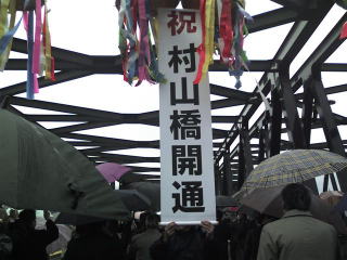 | (7)村山橋第2期線開通式に参列 千曲川に架かる現在の村山橋は、大正15年に永久橋として架設されました。橋の長さは凡そ814m、車道幅員5.5m、鉄道3.8mで赤褐色の鉄橋(現在は濃い黄緑にペンキ塗替え)は、私たちの誇りの橋でしたが、車社会において1車線の相互通行では、渋滞が常習的であり、鉄道と共用であることもあり、長野市側の鉄橋脇にある踏切は大変危険な踏切となりました。亦、千曲川の河床が相対的にあがってしまったのか、降雨量が多いのか大雨が降ると、橋桁に川面が触れるぐらいになって危険であることから、鉄道の運行が中止されることも近年は見受けられるようになりました。酷使に酷使をしたために橋自身の老朽化が指摘されるようになりました。 そこで、現在の村山橋の上流に4車線の道路と鉄道橋の建設が平成10年より架け替え工事が進められ、本日(12月22日)に新村山橋の長野から須坂に向けての車道部分が供用開始されるにあたり開通式がとり行なわれ参列しました。 参列者は長野県知事、衆・参議院の国会議員、地元県議会議員、長野市、須高三市町村の首長と議会議員、国土建設省関係者等凡そ150名が参列し、橋の安全を祈願しました。 北信地方の歴史がまた一枚書き換えられたと言える。子々孫々はこの新村山橋に郷里を屹度感じてくれるであろうと感じました。 ![]() 長野から須坂に向けての橋の開通 2009.12.22 ![]() やがては取壊される旧橋から開通式を待つ新橋(黒色) 2009.12.21 撮影 ![]() 二度と見れなくなった旧村山橋の風景 2009.12.21 撮影 |