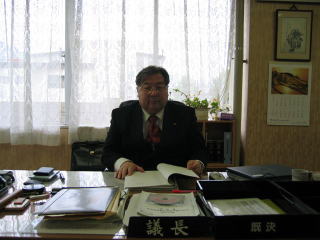 議長執務室で書類の決裁中です |