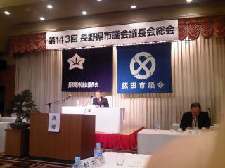 | 第143回市議会議長会総会は、飯田市に県下19市の市議会正副議長、事務局長が参集して執り行われました。市議会議長会会長提出議案2件、各市議会提出議案7件が上程され、質疑の後何れも満場一致で採択されました。 この総会で、須坂市議会は飯山市議会と共に、中野市議会の提出した「上信越自動車道4車線化工事の凍結解除について」を採択されるべく共同行動をとりました。(この案件について、平成22年1月31日付信濃毎日新聞に政府・民主党は聞き入れられた趣旨の報道がなされました。) その後、次回開催市を駒ヶ根市(7月上旬)、次々会開催都市を小諸市も併せて決しました。 |